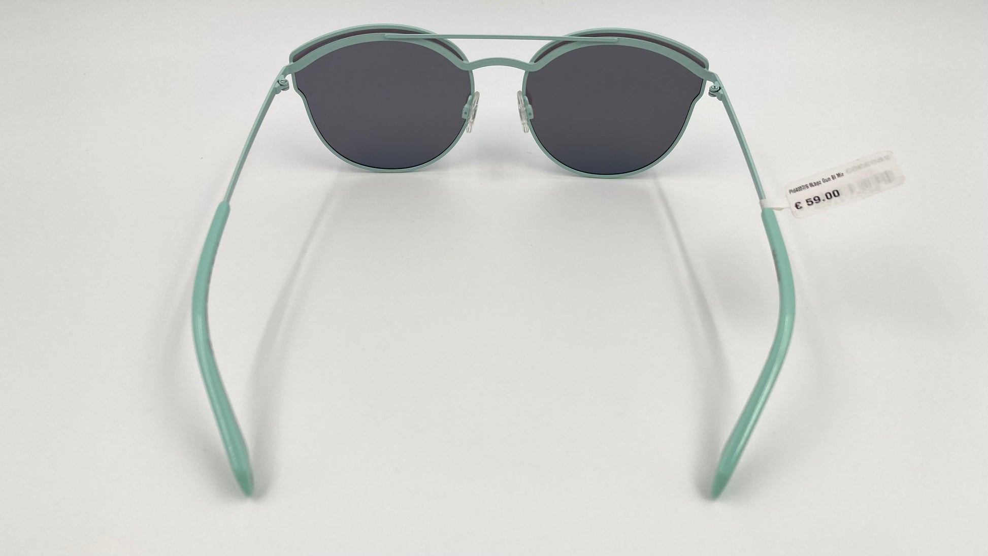 POLAROID PLD4057/S with a cyan colored metal frame and baby blue mirrored lens for a fresh, colorful vibe.