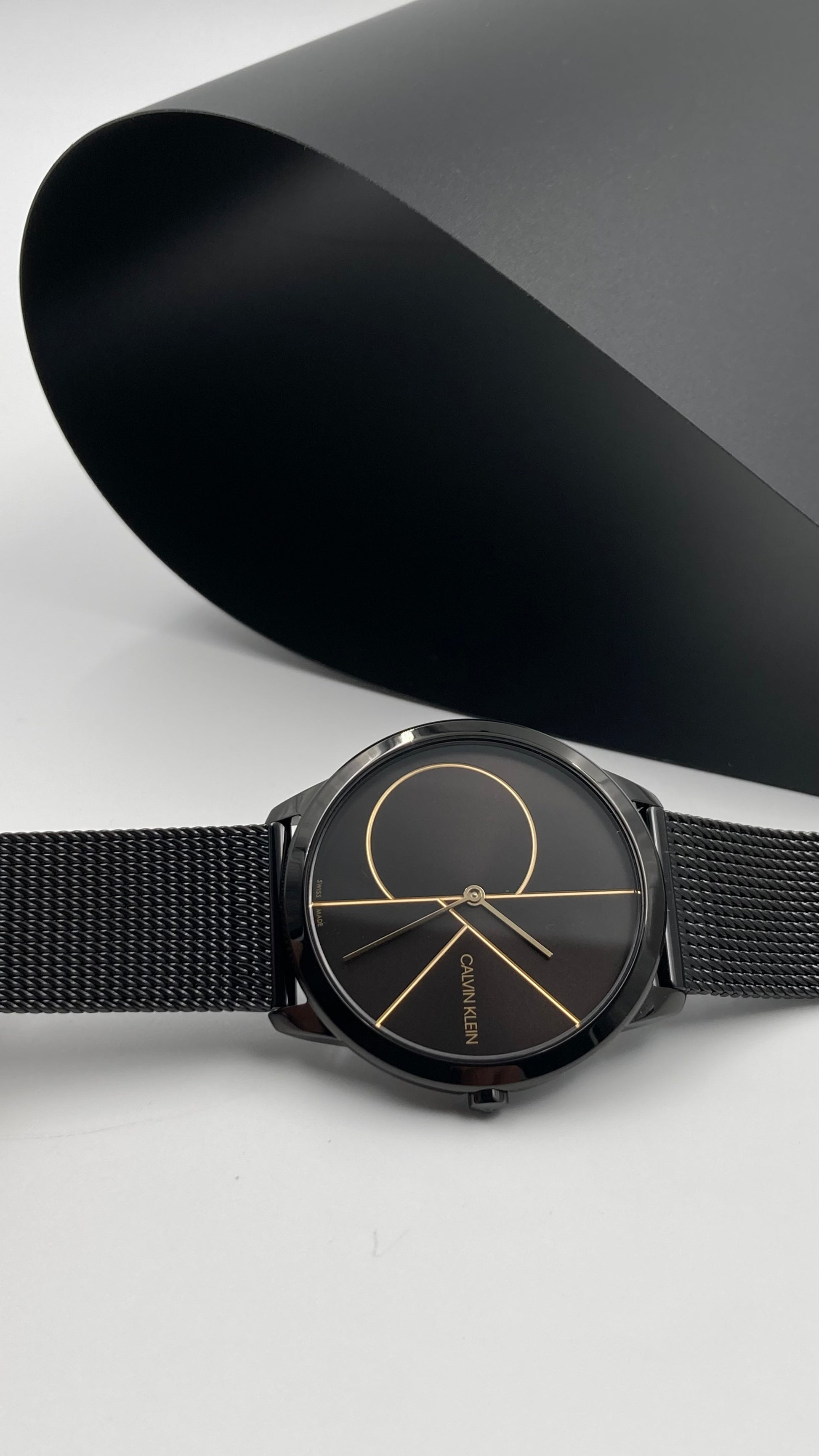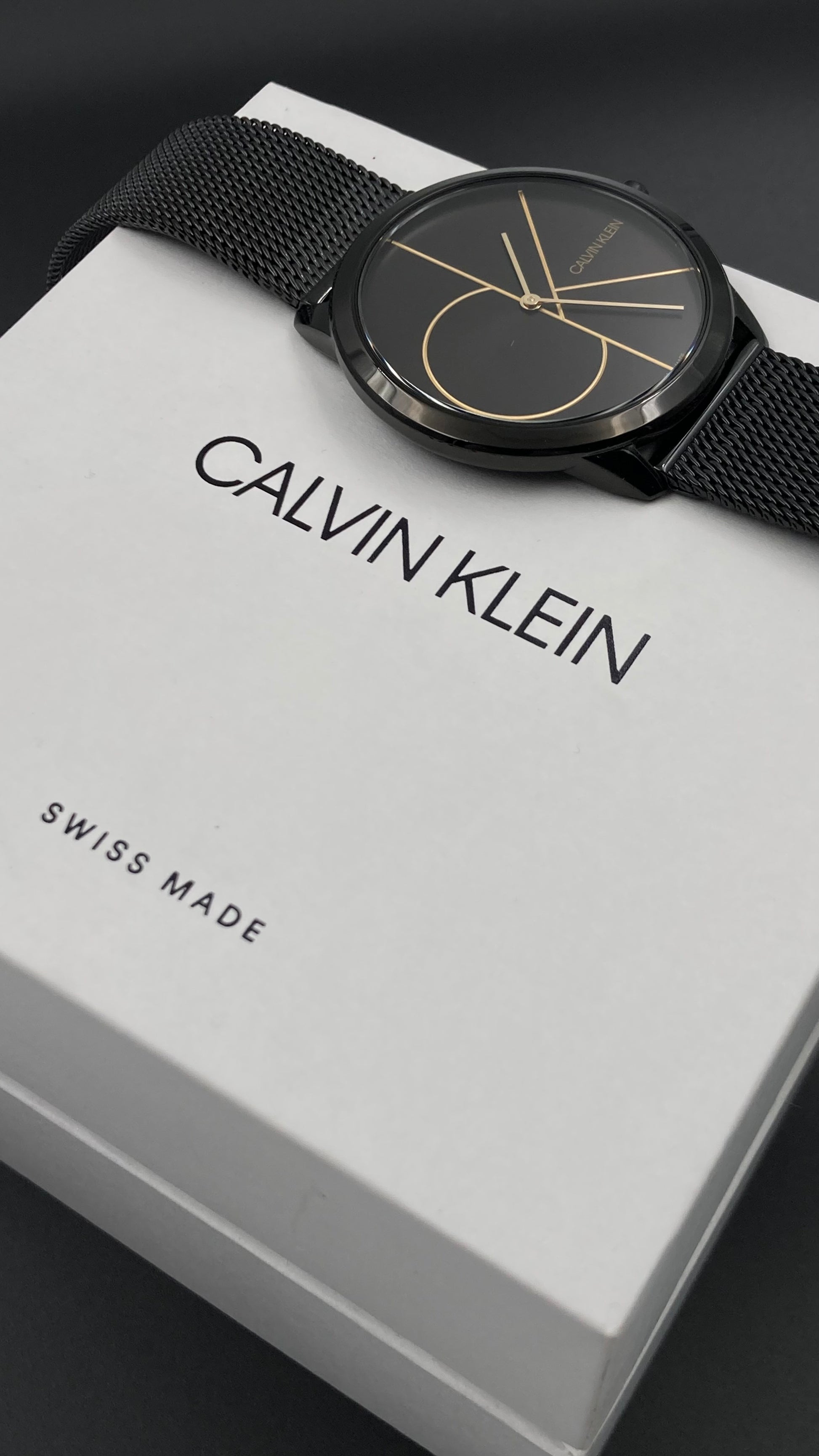 Neu Swiss Made Calvin Klein Herren Quarzuhr Edelstahl Schwarz Zifferblatt 40mmWa