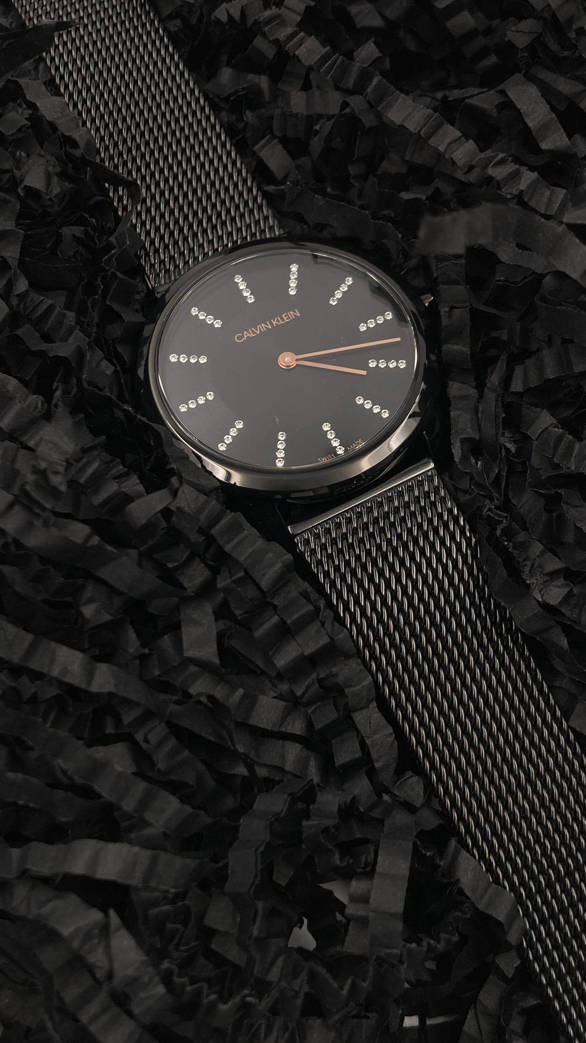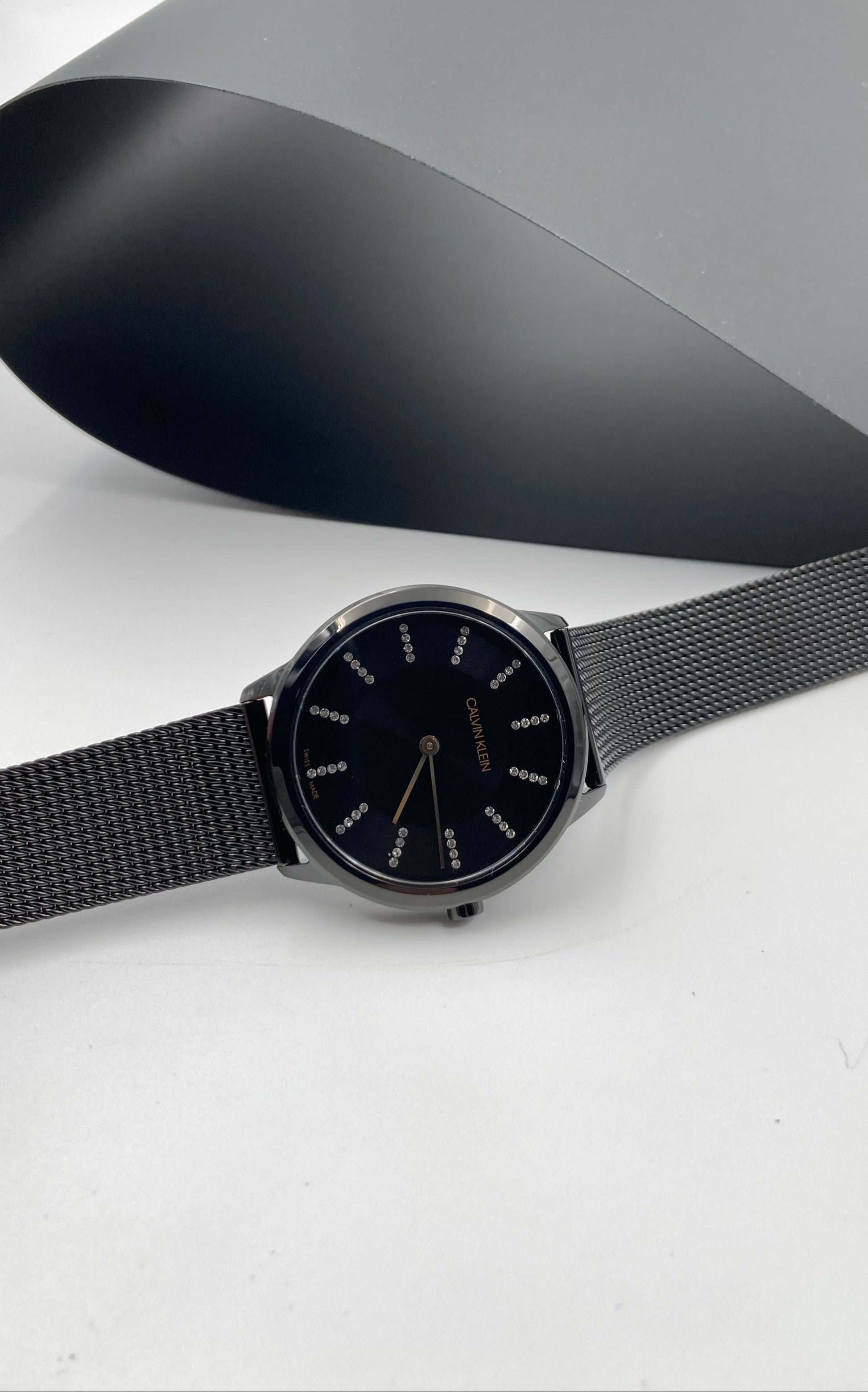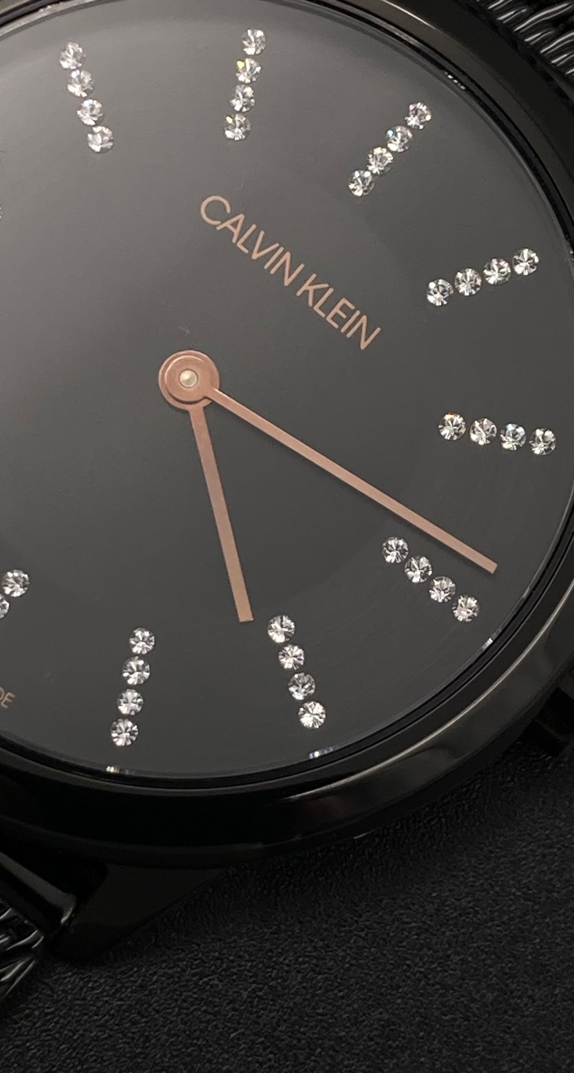 Neue, in der Schweiz hergestellte CALVIN KLEIN-Quarzuhr für Damen mit schwarzem Zifferblatt