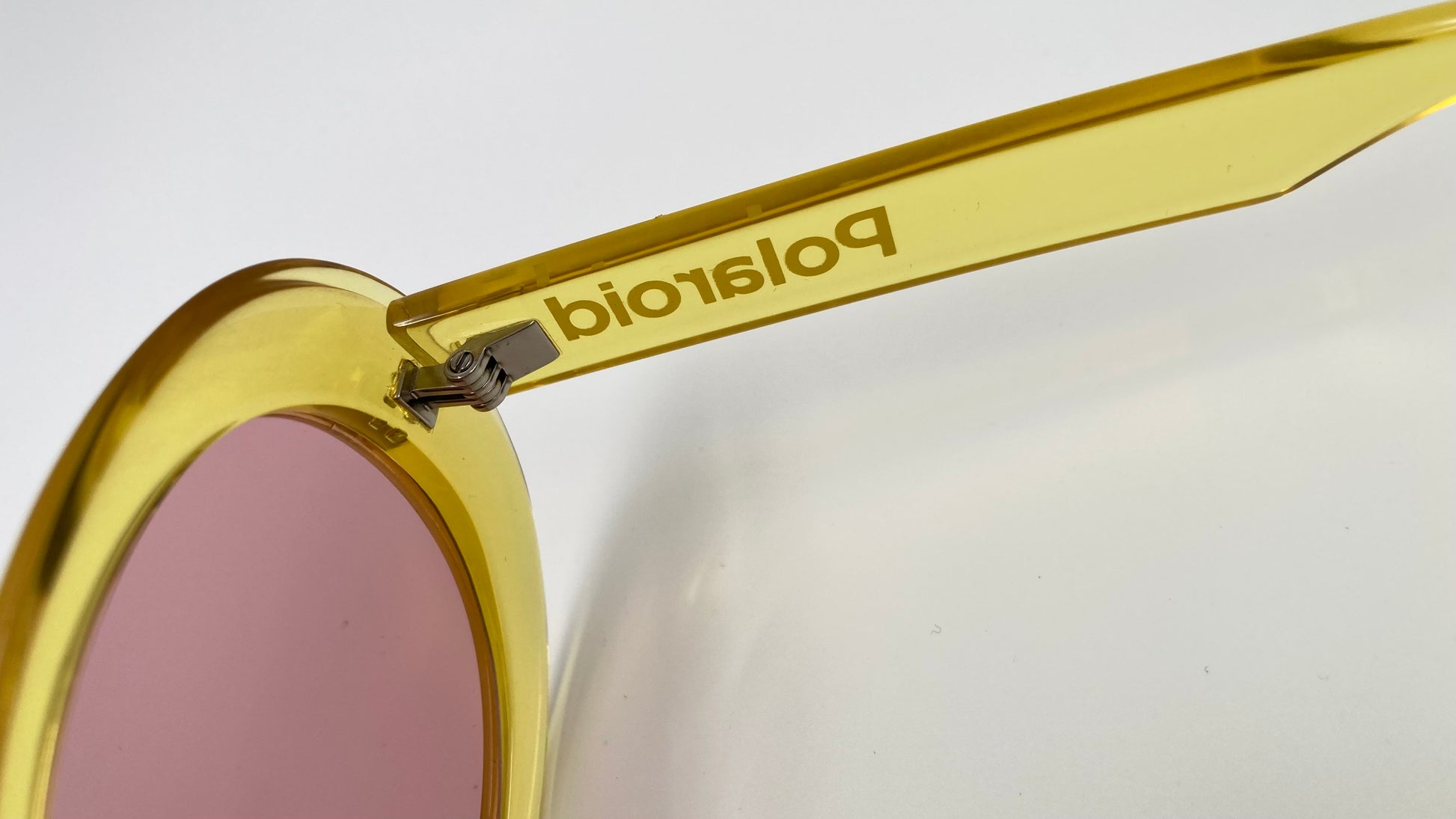 POLAROID PLD6052/S sunglasses with clear yellow frame and pink/purple lens for a unique colorful style.